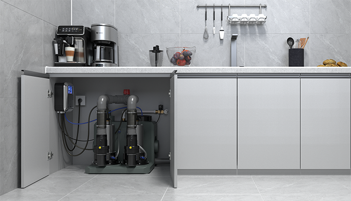 智流智能污水提升機,大通道氣壓感應管,不懼油污堵塞,全自動自來水反清洗,廚房油污不再是難題!